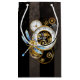 Antikaldagaler med guld och släpredskap, dekorerade med mekanisk dragonfly på brun, strimlad bakgrund. Steampunk.