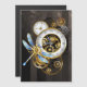 Antikaldagaler med guld och släpredskap, dekorerade med mekanisk dragonfly på brun, strimlad bakgrund. Steampunk.