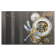 Antikaldagaler med guld och släpredskap, dekorerade med mekanisk dragonfly på brun, strimlad bakgrund. Steampunk.