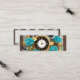 Mönsterad, antika klocka, försedd med smycken, händer och latinska siffror i guld och med turkos ro på brun, strimmig bakgrund. Steampunk stil.