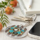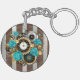 Mönsterad, antika klocka, försedd med smycken, händer och latinska siffror i guld och med turkos ro på brun, strimmig bakgrund. Steampunk stil.