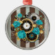Steampunk Clock och Turcouise Ro på Stripe Julgransprydnad Metall