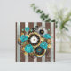 Steampunk Clock och Turcouise Ro på Stripe Julkort