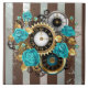 Steampunk Clock och Turcouise Ro på Stripe Kakelplatta