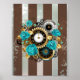 Steampunk Clock och Turcouise Ro på Stripe Poster