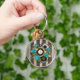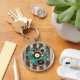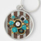 Steampunk Clock och Turcouise Ro på Stripe Rund Silverfärgad Nyckelring