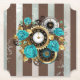 Steampunk Clock och Turcouise Ro på Stripe Underlägg Papper