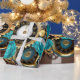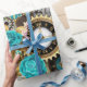 Steampunk Clock och Turquise Rosor på Stripe Presentpapper