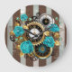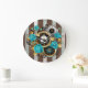 Steampunk Clock och Turquise Rosor på Stripe Stor Klocka