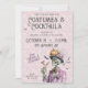 Den här steampunktinspirerade skelettdesignen ger vintage gotisk luft till Halloween-underhållning. Skelet är klädt i en vass rosa kostym med en pumpkapad hatt, bukhinna och en cocktail i handen, omgiven av fladdermus och korvaccenter. I teckningen kombineras mörkens elegans med en liten detaljrikedom, och den skapar perfekt för att hysa en sofistikerad "Costumes & Cocktails" party. Ange tonen för en oförglömlig kväll med en inbjudan till gästerna att bjuda kärlek på chic.