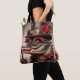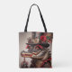 Den här djärva och fantasifulla arbetsytan har en steampunk-inspirerad antropomorfisk krokodil, försedd med okomplicerade tillbehör och klara detaljer. Med ett svart top hat dekorerat med redskap, klocka, röd ros och färgstarka fjädrar utstrålar denna krokodil en blandning av elegans och excentritet. Dess röda ögon, långa pipor och dramatiska röda läppstift ger en enastående personlighet i utformningen, medan krokodiln med tillförsikt håller en röd läppstift i sin klingade hand, som är försedd med ringar och armband. Med sitt röda snöre-smycke, sitt intrikata smycken och sitt steampunk-estetik är detta en perfekt för individer som står före mode, ångpunkentusiaster och älskare av djärva konstnärliga tillbehör. Det här är en snyggt påstående som är skapad av en varaktig duk, och som är en självuttryck för det dagliga livet, shoppandet eller kreativet. ångkokt krokodil tote, krånglig reptildesign, Viktorianinspirerad mode, fet påstående säck, unik steampunk djurkonst, gothic crokodile-utskrift, vismisk fantasi tote, eccentric reptile mode artist. Konstgjord steampunkpura, färgstark krokodilillustration