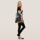 En dachshund-hund är klädd i en bukslips och top hat är redo att gå på en promenad medan han tålmodigt väntar bland alla skor och skor från dam.