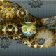 steampunk ånga, ugglan som är mekanisk, teknologi, utrustar, guld, blått, fiber,