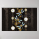 Steampunk Dragonflies på brun strimmig bakgrund Poster