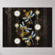 Steampunk Dragonflies på brun strimmig bakgrund Poster