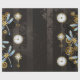 Antikaldagaler och nycklar med guld och släpredskap, dekorerade med mekaniska, steampunk drakar på brun, strimlad bakgrund.