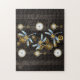 Steampunk Dragonflies på brun strimmig bakgrund Pussel