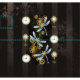 Antikaldagaler och nycklar med guld och släpredskap, dekorerade med mekaniska, steampunk drakar på brun, strimlad bakgrund.