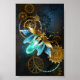Steampunk är fullt med blå, genomskinlig lampa av vingar och grönt på bärn, brun, texturerad bakgrund. Steampunk stil.