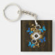 Sammansättning av rund steampunk-klocka med svart romerskt numeriskt uppslag, dekorerat med guld och släpredskap, blå morfobutterflugor och skadade linser på brun stripe-bakgrund. Steampunk stil.