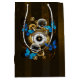 Sammansättning av rund steampunk-klocka med svart romerskt numeriskt uppslag, dekorerat med guld och släpredskap, blå morfobutterflugor och skadade linser på brun stripe-bakgrund. Steampunk stil.
