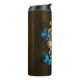 Sammansättning av rund steampunk-klocka med svart romerskt numeriskt uppslag, dekorerat med guld och släpredskap, blå morfobutterflugor och skadade linser på brun stripe-bakgrund. Steampunk stil.