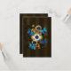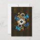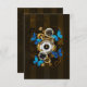 Sammansättning av rund steampunk-klocka med svart romerskt numeriskt uppslag, dekorerat med guld och släpredskap, blå morfobutterflugor och skadade linser på brun stripe-bakgrund. Steampunk stil.