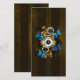 Sammansättning av rund steampunk-klocka med svart romerskt numeriskt uppslag, dekorerat med guld och släpredskap, blå morfobutterflugor och skadade linser på brun stripe-bakgrund. Steampunk stil.