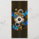 Sammansättning av rund steampunk-klocka med svart romerskt numeriskt uppslag, dekorerat med guld och släpredskap, blå morfobutterflugor och skadade linser på brun stripe-bakgrund. Steampunk stil.