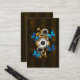 Sammansättning av rund steampunk-klocka med svart romerskt numeriskt uppslag, dekorerat med guld och släpredskap, blå morfobutterflugor och skadade linser på brun stripe-bakgrund. Steampunk stil.