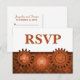 Bröllop Response Postcard i mörk orange med ett trio växlar och en grungy schaktad mönster. Det här unika och snyggt OSA-vykortet är perfekt för ditt alternativa steampunk, bröllop! Enkel att anpassa, lägg bara till informationen om bröllop i den fält som tillhandahålls. Klicka på Anpassa om du vill söka efter ytterligare anpassningsalternativ.