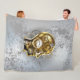Konceptuellt, mekaniskt, mänskligt huvud med antika manometrar och metall-växlar mot gråttets industriella bakgrund. Steampunk stil.