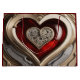 Den här fantastiska designen har ett vackert detaljerat, steampunk-inspirerat hjärta, som är inneslutet i ett komplicerat gyllene och metalliskt ram med klockwork inslag. Kombinationen av djuprött glasliknande struktur och ömtåliga mekaniska redskap symboliserar sammanslagningen av kärlek och tid, skapar den till en perfekt biet för romantik, steampunkentusiaster och älskare för unik mekanisk konst. vintagen detaljerar ge om denna konst på ett mystiskt och elegant sätt, perfekt för gåvor, mode-tillbehör eller hemdekanter. Ett måste för dem som uppskattar skönheten i kärlek i rörelse!