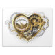 Mekaniskt, volymetriskt, steampunkt hjärta med tryckmätare, stålväxlar och guld på vit bakgrund. Steampunk stil.