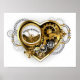 Mekaniskt, volymetriskt, steampunkt hjärta med tryckmätare, stålväxlar och guld på vit bakgrund. Steampunk stil.