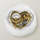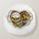 Mekaniskt, volymetriskt, steampunkt hjärta med tryckmätare, stålväxlar och guld på vit bakgrund. Steampunk stil.