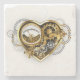 Mekaniskt, volymetriskt, steampunkt hjärta med tryckmätare, stålväxlar och guld på vit bakgrund. Steampunk stil.