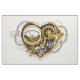 Mekaniskt, volymetriskt, steampunkt hjärta med tryckmätare, stålväxlar och guld på vit bakgrund. Steampunk stil.
