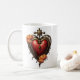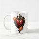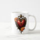 Steampunk Heart med Flowers. Ett steampunk-stil-hjärta, huvudsakligen rött med synliga sprickor, inneslutet i ett ornat gyllene ram. I ram ingår klockarbete inslag och läggs till med orange blommor. Bakgrunden är en mjuk, muterad rosa med blommönster i guld och brun. Den allmänna stämningen är romantisk med en aning vintage och mekanisk estetik.