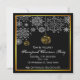 Steampunk julfestinladan. Denna eleganta steampunk-jul-inbjudan blandar traditionella julbilder av snöflingor med de trendiga kugghjulen och kuggarna från steampunk-temat för att skapa en originell men vacker steampunk-jul firande inbjudan som är perfekt för din vinterfest. Lätt att anpassa efter dina egna krav, fyll bara i fälten med din egen personliga information. Kan enkelt anpassas för vinterbröllop eller födelsedagar etc. Med sina snövita snöflingor och guld- och blanka kugghjul eller kuggar mot en elegant svart bakgrund inom en förgylld ramkant, är denna julinbjudan säker på att få din fest igång som ett urverk.