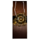 Olika, fantastiska klockor med guld och brasväxlar på brunt, rostfritt underlag. Steampunk stil.