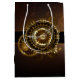 Olika, fantastiska klockor med guld och brasväxlar på brunt, rostfritt underlag. Steampunk stil.
