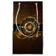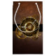 Olika, fantastiska klockor med guld och brasväxlar på brunt, rostfritt underlag. Steampunk stil.
