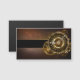 Olika, fantastiska klockor med guld och brasväxlar på brunt, rostfritt underlag. Steampunk stil.