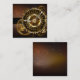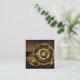 Olika, fantastiska klockor med guld och brasväxlar på brunt, rostfritt underlag. Steampunk stil.