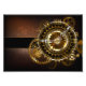 Olika, fantastiska klockor med guld och brasväxlar på brunt, rostfritt underlag. Steampunk stil.