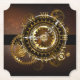 Olika, fantastiska klockor med guld och brasväxlar på brunt, rostfritt underlag. Steampunk stil.