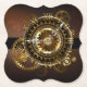 Olika, fantastiska klockor med guld och brasväxlar på brunt, rostfritt underlag. Steampunk stil.