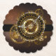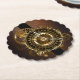 Olika, fantastiska klockor med guld och brasväxlar på brunt, rostfritt underlag. Steampunk stil.