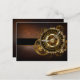 Olika, fantastiska klockor med guld och brasväxlar på brunt, rostfritt underlag. Steampunk stil.